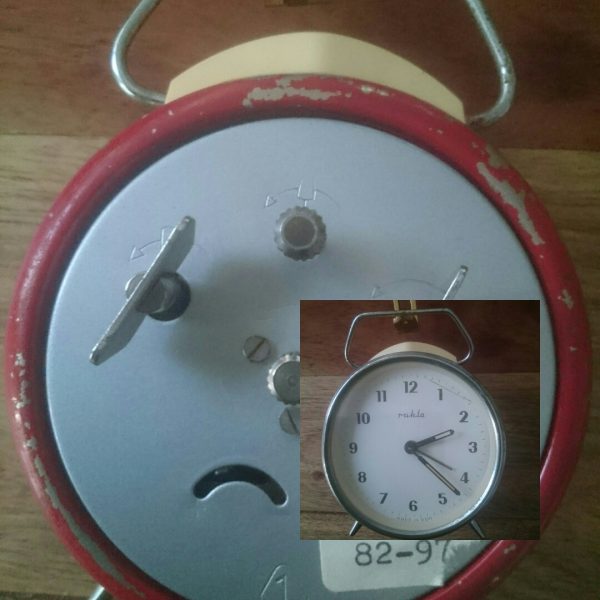 Solider Wecker mit komplettem Metallgehäuse, den sich für 17 Mark wirklich jeder leisten konnte.
