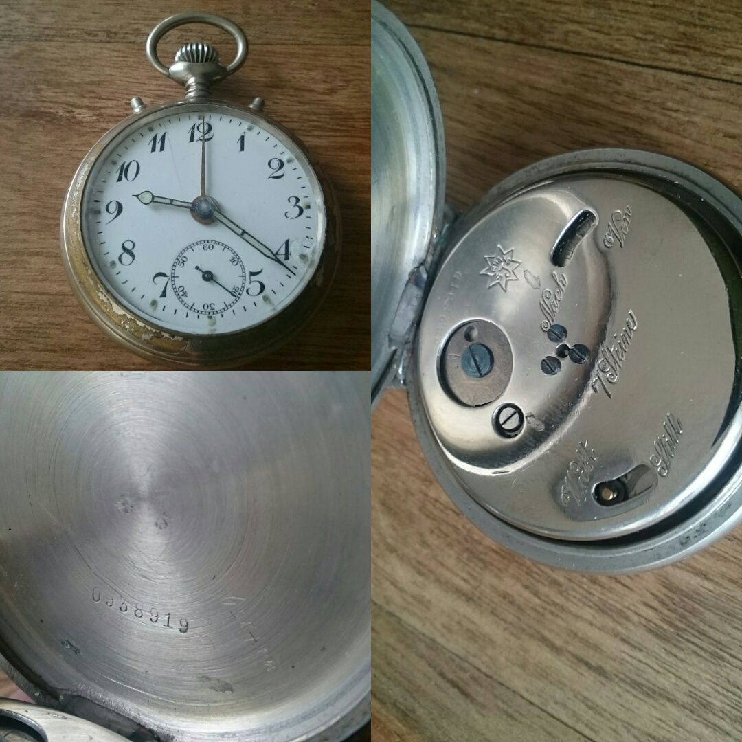 Ein Taschenuhr- Wecker in Funktion von Junghans ( etwa 1910- 1920).Starke Gebrauchsspuren.