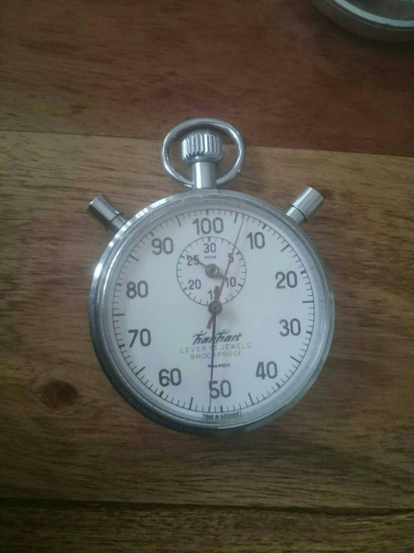 Der Durchmesser beträgt 56 mm und die Gesamthöhe 18,0 mm. Die Uhr läuft und der Wecker weckt. Aber es ist der Wecker-Zeiger im Centrum abgebrochen.Muss also ausgetauscht werden.